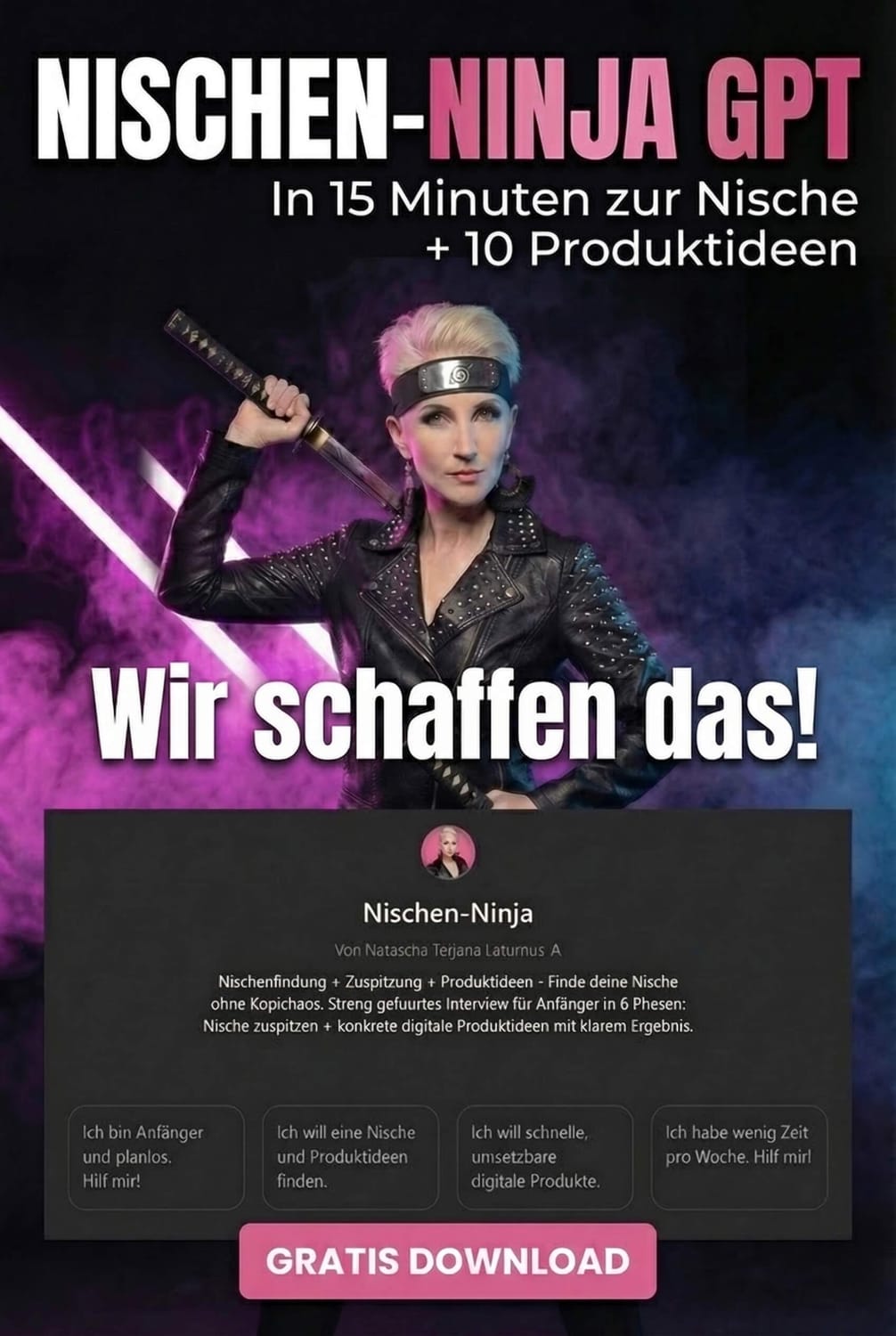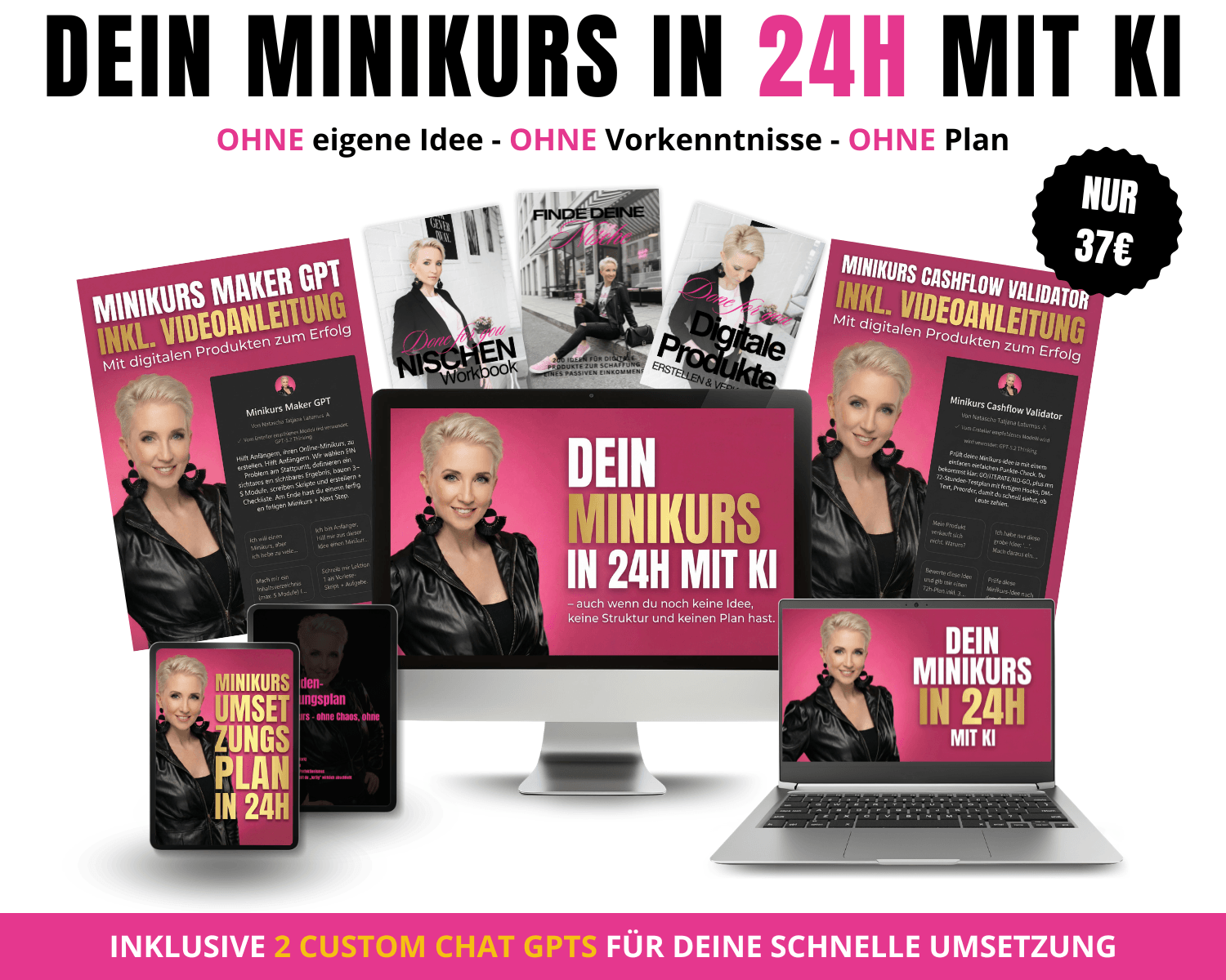 Ich helfe dir, digitale Produkte & Minikurse aufzubauen ganz ohne Ads, Instagram Hustle und ohne Technikstress. Mit KI und klaren Systemen wird aus Ideen ein Produkt, das verkauft. Build your Empire!