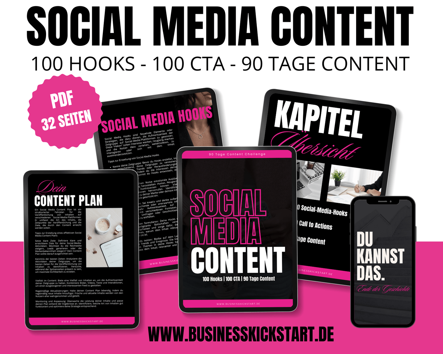 Social Media Content - 100 Hooks, 100 CTA, 90 Tage Content Ideen für dich